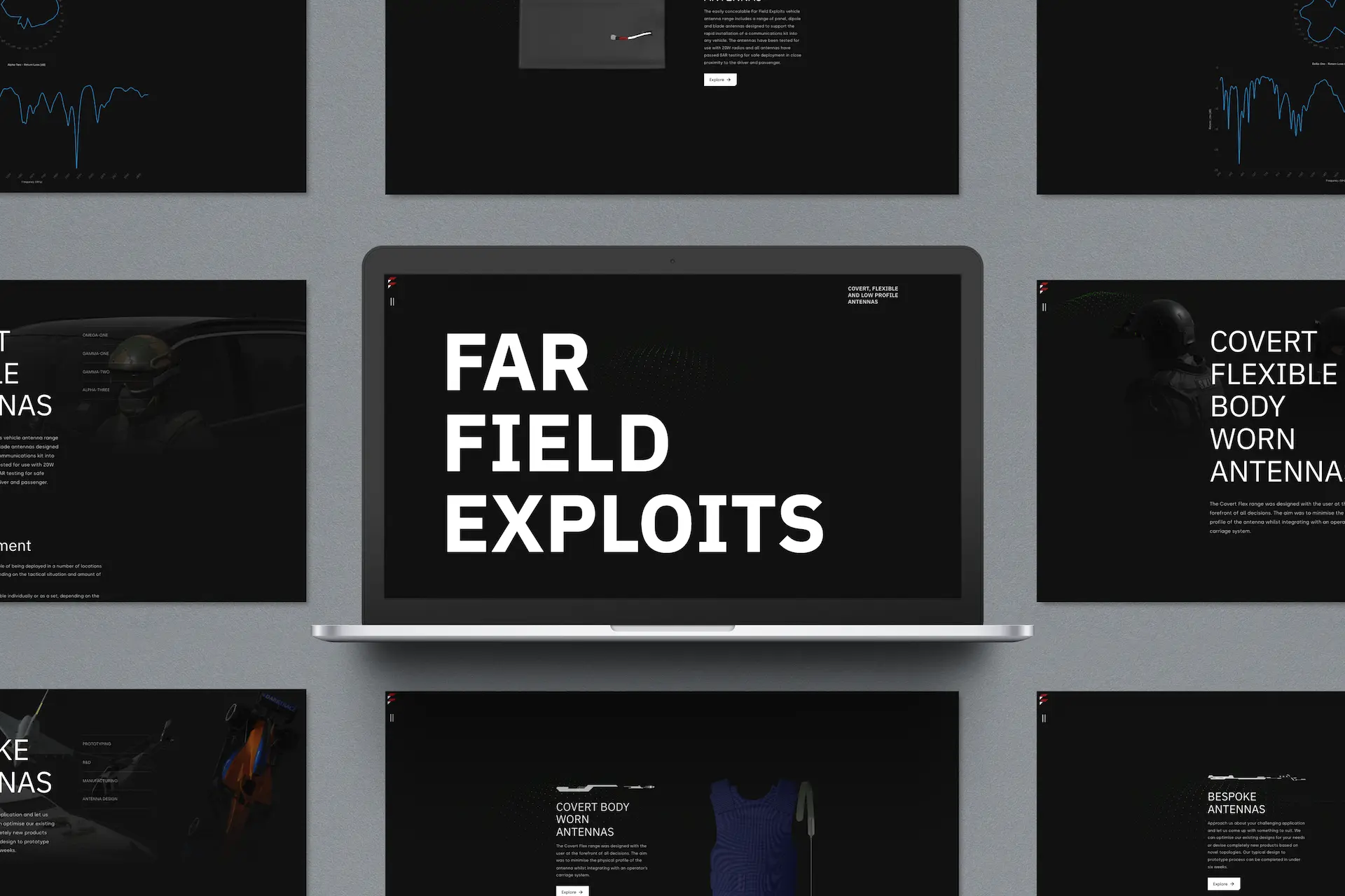 Our project for Far Field Exploits was focussed on ensuring that their proprietary technology was front and center of a users attention. We used a JavaScript framework with 3D models to give context to the antennas and to help a user visualise size, scale and capability. In the product pages we present complex product data in a consumable way, alongside producing a 3D animated explainer video to demonstrate the Far Field products in use.